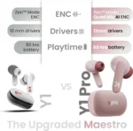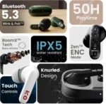 Enhance your audio experience with the Y1 earbuds. Indulge yourself in a world of pure sound with 50 hours of uninterrupted playtime. Equipped with the cutting-edge Zen Mode Tech ENC and BoomX Tech, prepare to be enthralled by a symphony of crystal-clear melodies and bass so immersive, it will transport you to an alternate dimension. Navigate effortlessly through your playlist with intuitive touch controls. Stay connected on the go with the Bluetooth 5.3 Blink & Pair technology and Pro+ calling mic, delivering quick pairing along with clear voice quality for all your important calls. Take command with voice assistance, effortlessly controlling your music and managing tasks hands-free. Elevate your audio experience with the Y1 earbuds and discover the ultimate in convenience, comfort, and superior sound quality.